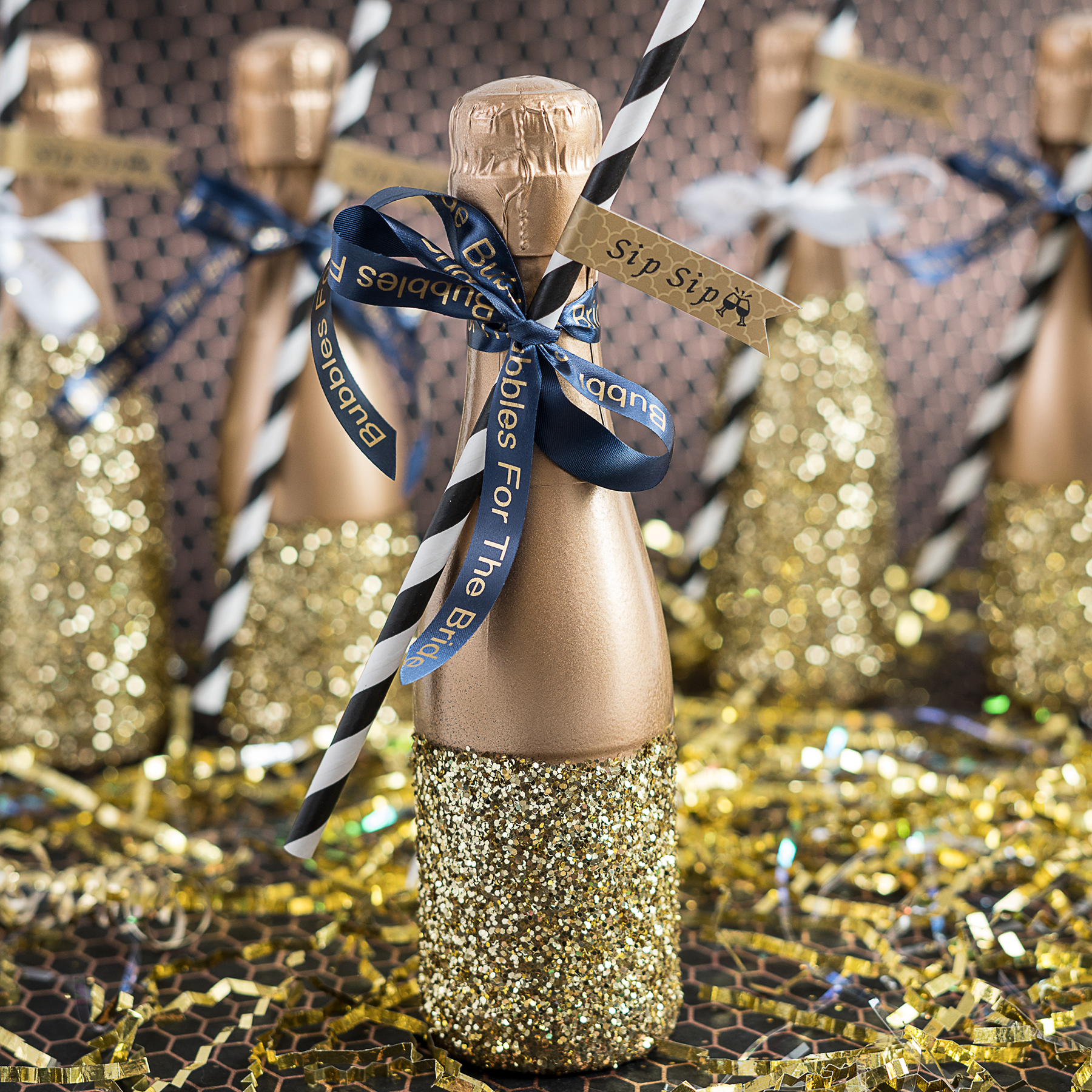 Personnalisez facilement l'élégant ruban doré à motifs géométriques avec votre propre message personnalisé en caractères noirs faciles à lire pour faire une impression durable.